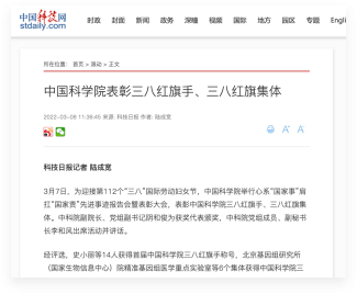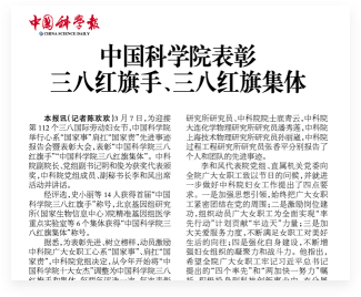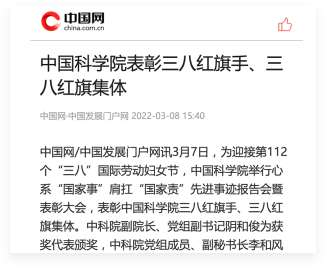 3月7日,為迎接第112個(gè)“三八”國際勞動(dòng)?jì)D女節(jié),中國科學(xué)院舉行心系“國家事”肩扛“國家責(zé)”先進(jìn)事跡報(bào)告會(huì)暨表彰大會(huì),表彰中國科學(xué)院三八紅旗手、三八紅旗集體。中科院副院長、黨組副書記陰和俊為獲獎(jiǎng)代表頒獎(jiǎng),中科院黨組成員、副秘書長李和風(fēng)出席活動(dòng)并講話。