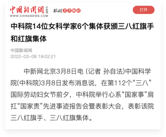 更多…3月7日,中科院婦工委、中科院工會(huì)女工委舉行心系“國家事”肩扛“國家責(zé)”先進(jìn)事跡報(bào)告會(huì)暨表彰大會(huì)。底青云、潘秀蓮、孫麗崴、張香平4位女性科學(xué)家代表,講述了她們“國家需要什么就研究什么”的科研故事。