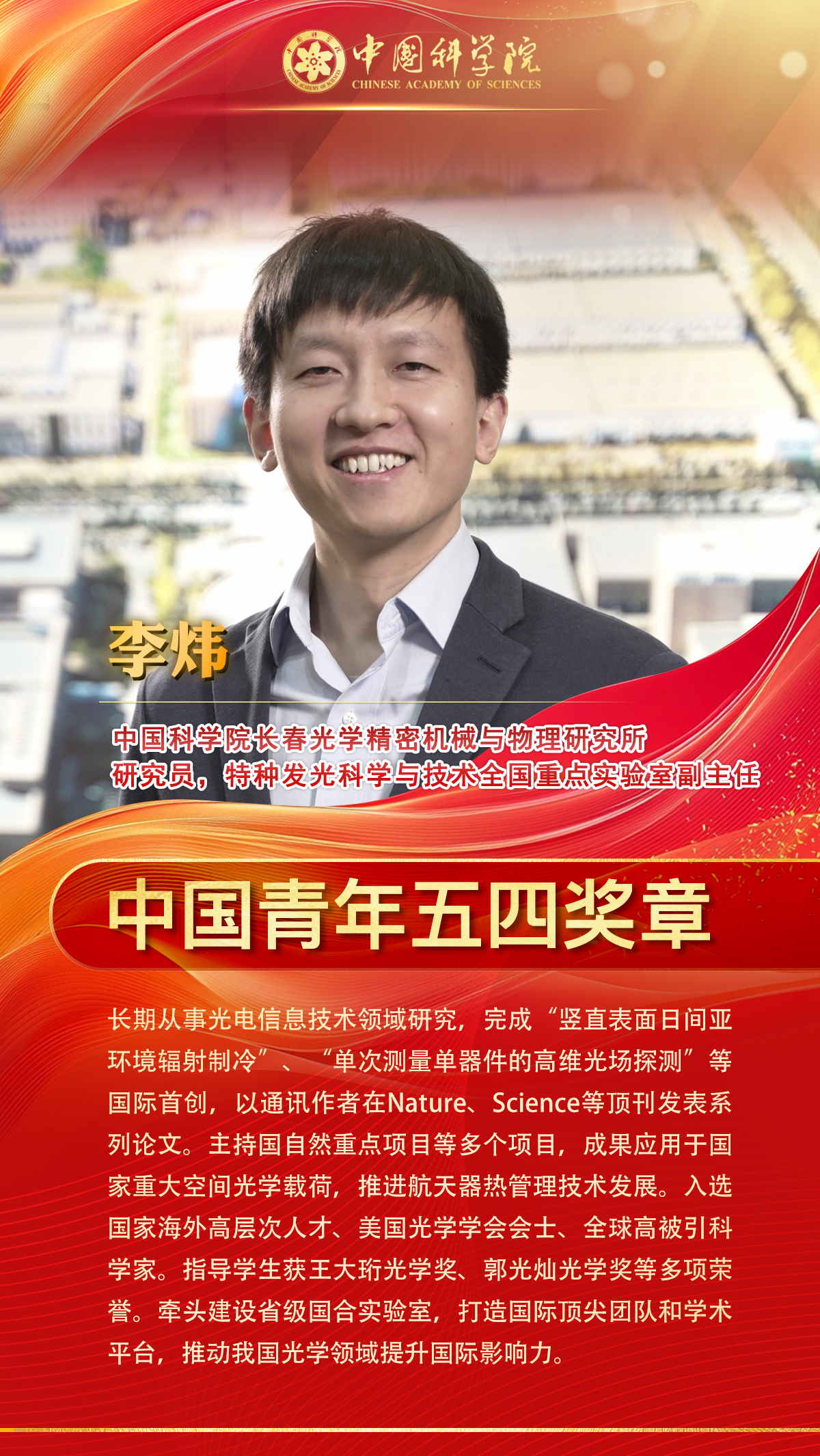 中國科學(xué)院3名同志榮獲中國青年五四獎?wù)拢?個集體榮獲中國青年五四獎?wù)录w,5名同志榮獲新時代青年先鋒獎。