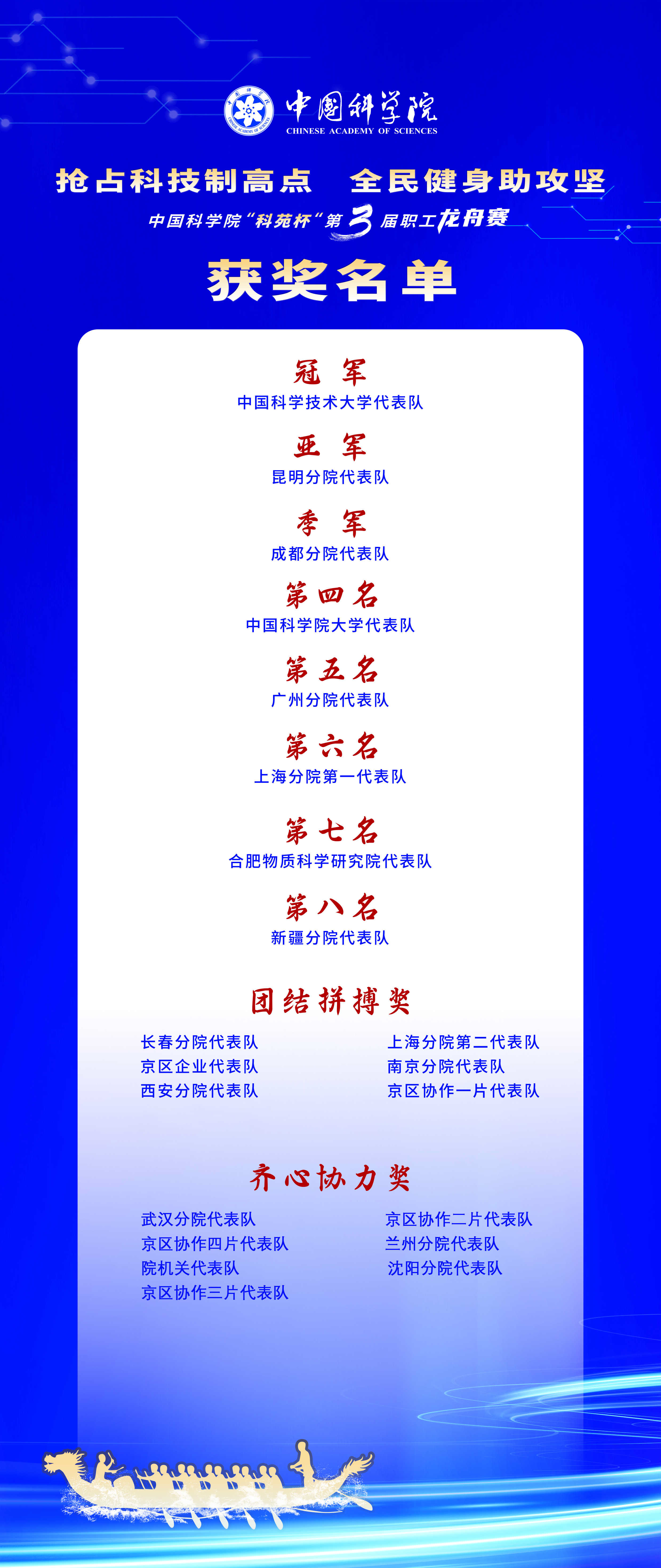 參賽人員紛紛表示,通過(guò)本次比賽,感受到了龍舟競(jìng)渡的激情與拼搏,進(jìn)一步領(lǐng)會(huì)了勇攀高峰、敢為人先、集智攻關(guān)、團(tuán)結(jié)協(xié)作的科學(xué)家精神,增加了搶占科技制高點(diǎn)的信心和決心,賽后將以更加飽滿的精神狀態(tài)投入科技創(chuàng)新。