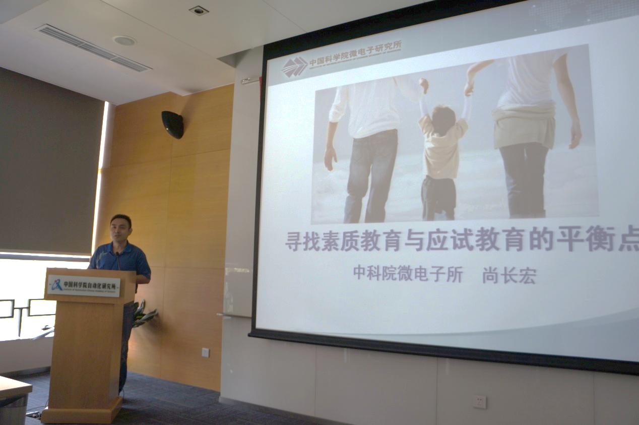 會上,獲得中央國家機關(guān)干部職工家庭建設(shè)好經(jīng)驗“最佳經(jīng)驗獎”的微電子所尚長宏,針對職工子女家庭教育問題,作了題為《尋找素質(zhì)教育與應(yīng)試教育的平衡點》的主題報告。他從課外活動帶動課內(nèi)學(xué)習(xí)、興趣帶動學(xué)習(xí)、從公益活動融入社會、提升素質(zhì)等四個方面分享了自己在子女教育過程中的好經(jīng)驗和好方法。報告結(jié)束后,他與現(xiàn)場職工進行了交流,并對職工提出的疑問一一耐心解答。