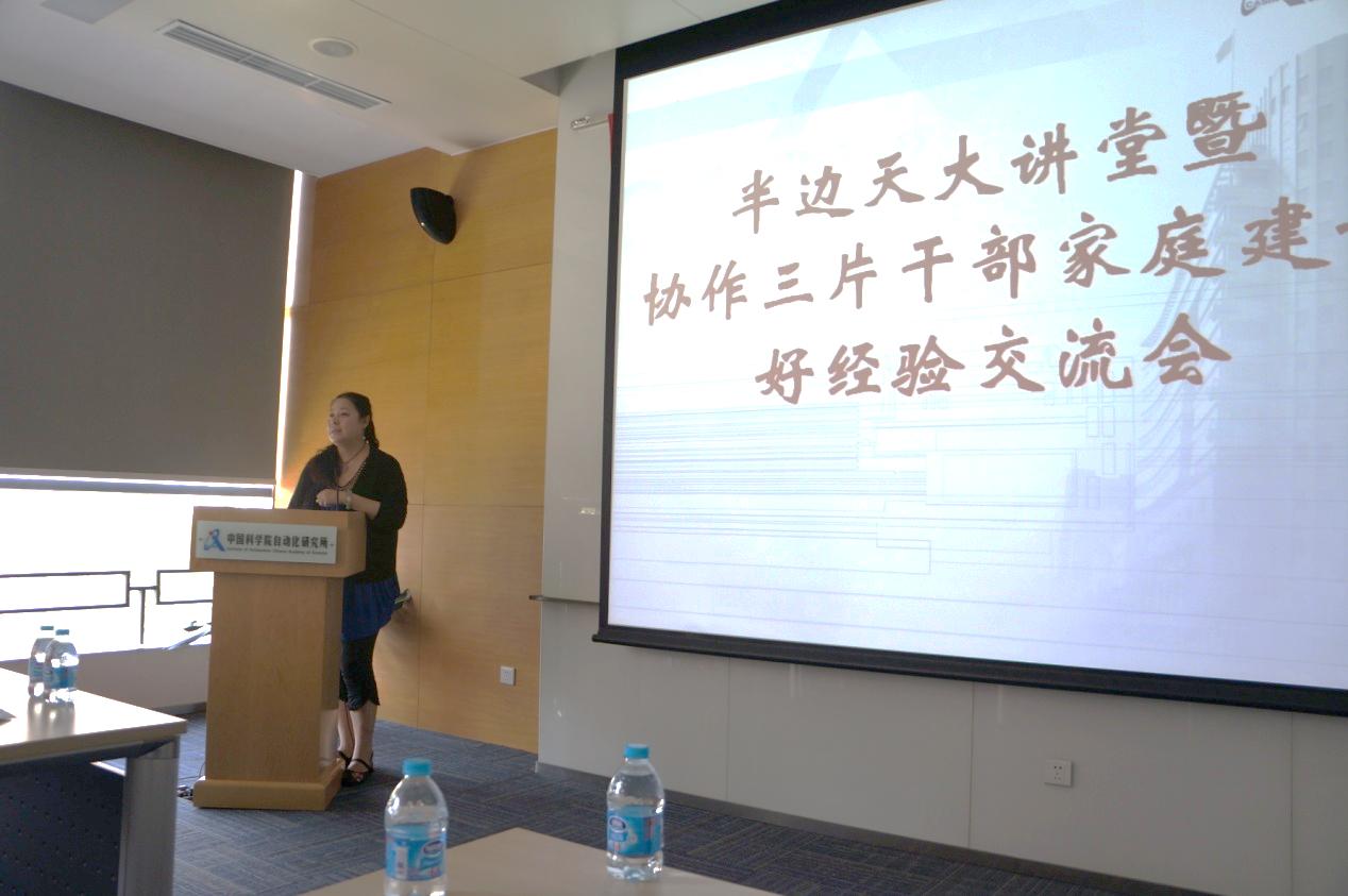 9月10日第三十個教師節(jié)當(dāng)天,由中科院婦工委主辦、京區(qū)協(xié)作三片承辦的“半邊天”大講堂——協(xié)作三片干部職工家庭建設(shè)好經(jīng)驗交流會在自動化所舉辦,中科院婦工委辦公室主任、京區(qū)黨委群工部部長霍妍麗出席活動并講話,來自協(xié)作三片各單位的近40名職工參加活動。活動由自動化所黨委書記王小明主持。