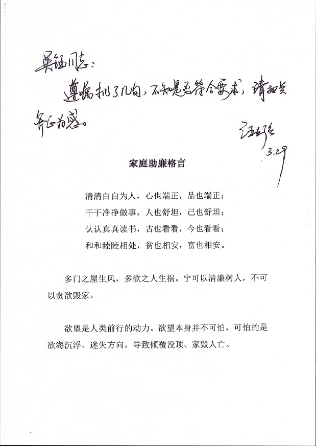 在此項(xiàng)工作中,院婦工委及時(shí)布置、各協(xié)作片認(rèn)真組織、各基層單位積極響應(yīng)、廣大黨員干部職工主動參加,既有院士、局級領(lǐng)導(dǎo)認(rèn)真思考后凝練出的家訓(xùn)格言,也有廣大科研工作者和優(yōu)秀企業(yè)家對自己嚴(yán)謹(jǐn)家風(fēng)的追憶;既有父母寫給子女的諄諄教導(dǎo)和殷殷希望,也有子女寫給父母的真誠感激和深深敬意;既有夫妻之間關(guān)于“廉政”的交流,也有職工子女對家風(fēng)家訓(xùn)的思考,取得了良好的效果。