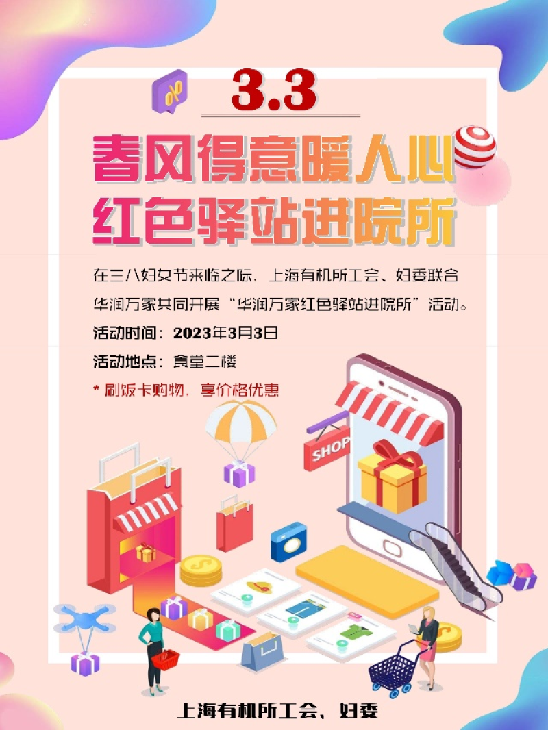 3月3日,上海有機(jī)所婦委、工會(huì)聯(lián)合華潤(rùn)萬(wàn)家開(kāi)展“春風(fēng)得意暖人心,紅色驛站進(jìn)院所”活動(dòng),為滿足所內(nèi)廣大職工師生需求,現(xiàn)場(chǎng)設(shè)立了超多優(yōu)惠活動(dòng),商品優(yōu)良、品類(lèi)豐富?,F(xiàn)場(chǎng)人群涌動(dòng),前來(lái)購(gòu)買(mǎi)的顧客絡(luò)繹不絕?;顒?dòng)現(xiàn)場(chǎng)還貼心安排試吃活動(dòng),得到全體職工師生的一致好評(píng)?,F(xiàn)場(chǎng)氣氛熱烈,大家紛紛采購(gòu)女神節(jié)禮物,收貨滿滿幸福感。