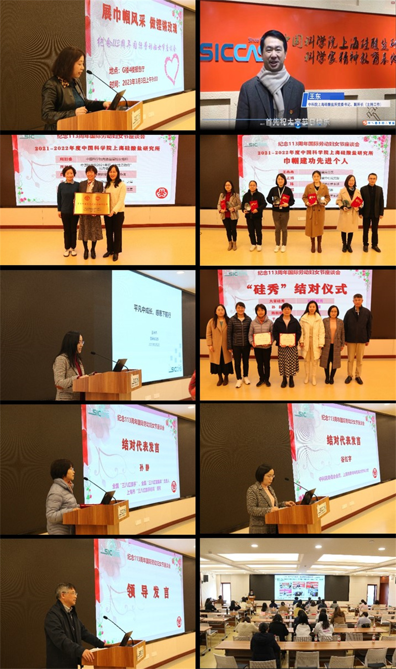 為紀念和慶祝第113個“三八”國際勞動婦女節(jié),激勵和引領廣大女職工矢志投身科技創(chuàng)新事業(yè),營造尊重女性、關愛女性、支持女性科研事業(yè)的良好氛圍,中國科學院上海硅酸鹽研究所婦委聯(lián)合工會開展“展巾幗風采,做鏗鏘玫瑰”女性活動月系列活動。通過組織召開國際婦女節(jié)交流會,搭建成長平臺,引導女職工崗位建功;推動大家“硅秀”結對,選樹優(yōu)秀巾幗典型;通過部門領導送祝福和“硅秀”趣味運動會,營造關愛與團結進取氛圍,力求讓全所女性度過一個舒心、幸福、快樂的陽春三月。
