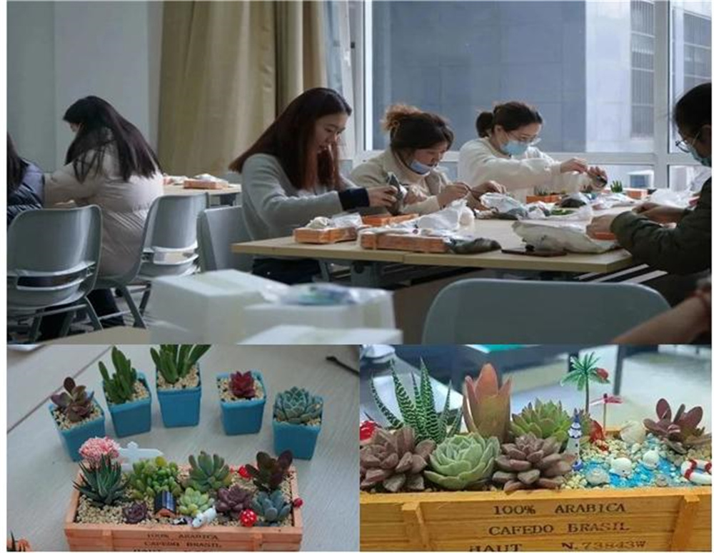3月8日下午,組織了女職工參加多肉花卉拼盤培訓和比賽,女職工們用幾種多肉搭配出的小景觀十分生動,荷塘月色、碧海藍天。。。。。。大家用心感受DIY帶來的樂趣,領略創(chuàng)作帶來的成就感和滿足感,手捧著自己親手制作的多肉拼盤,春日的浪漫如期而至!活動不僅讓女職工們學到了插花知識,陶冶了情操,感悟生活的自然真諦,也讓大家度過了一個有特色、有意義的節(jié)日。
