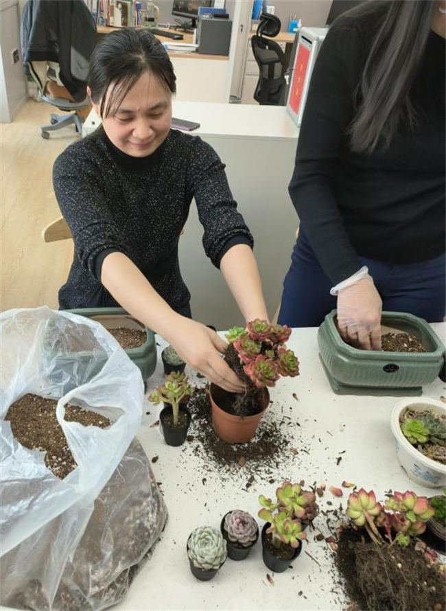 活動現(xiàn)場氣氛溫暖、熱烈,大家洋溢著快樂與喜悅,女員工積極分享了插花和養(yǎng)花心得,并親手栽下了屬于自己的花藝作品。