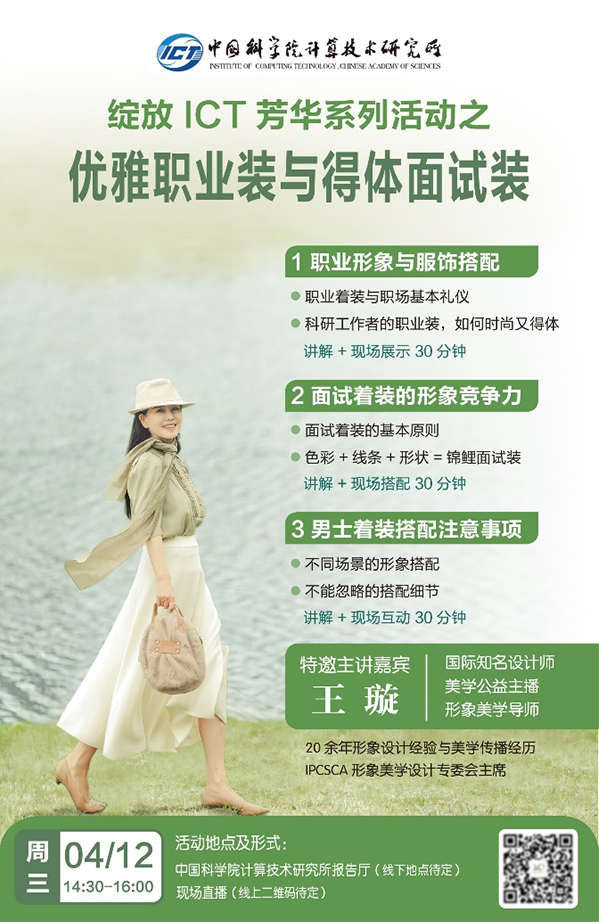 計算所婦委會后續(xù)還將開展一系列服務(wù)女性職工學(xué)生發(fā)展成長的系列活動。第二屆“ICT女性成長與發(fā)展論壇”舉辦在即,論壇將邀請計算所內(nèi)外部分優(yōu)秀女性代表分享個人職場經(jīng)歷與家庭生活經(jīng)驗;女性“優(yōu)雅職業(yè)裝與得體面試裝”預(yù)熱升溫,期待通過講座能進一步幫助計算所廣大女性展現(xiàn)健康美麗、知性優(yōu)雅的卓越風(fēng)采。而這些系列活動的舉辦,將進一步激發(fā)廣大女職工建功立業(yè)的熱情,以更積極的態(tài)度面對生活,以更飽滿的熱情和昂揚的斗志投身科研業(yè)務(wù)工作中,為研究所與國家科技事業(yè)的發(fā)展貢獻巾幗力量!