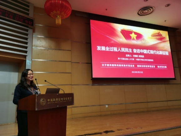 3月20日下午,分子納米結(jié)構(gòu)與納米技術(shù)黨總支與其它兩支部聯(lián)學(xué)共建,邀請(qǐng)第十四屆全國(guó)人大代表、化學(xué)所黨委委員方曉紅研究員做主題報(bào)告,深入學(xué)習(xí)習(xí)近平新時(shí)代中國(guó)特色社會(huì)主義思想和黨的二十大精神,學(xué)習(xí)全國(guó)兩會(huì)精神,激勵(lì)大家結(jié)合本職工作,堅(jiān)持“四個(gè)面向”,不斷向科學(xué)技術(shù)廣度和深度進(jìn)軍。