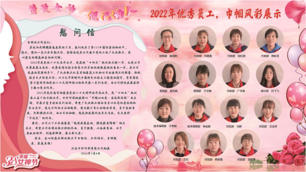 一、3月8日通過宣傳欄向全體女職工發(fā)慰問信并對2022年度的21名優(yōu)秀女員工進行宣傳。