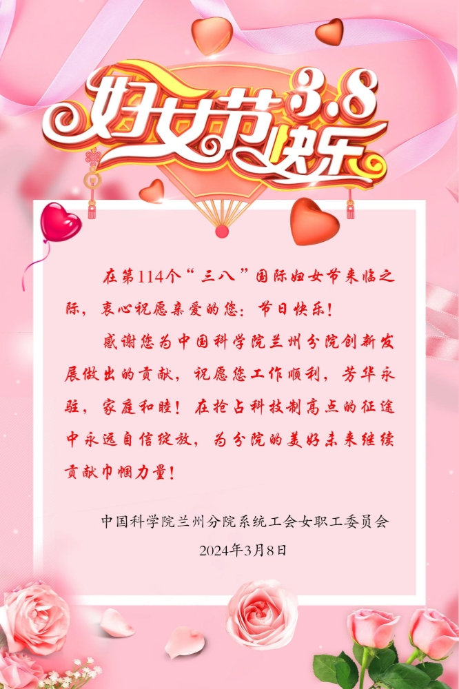 分院分黨組、系統(tǒng)工會利用“科蘭黨建”微信公眾號發(fā)布節(jié)日寄語致敬系統(tǒng)全體女職工的默默奉獻付出,通過中國科學院電子郵箱于3月8日9點38分發(fā)送電子賀卡祝系統(tǒng)全體女職工、女同胞節(jié)日快樂,并勉勵鼓舞大家繼續(xù)發(fā)揮光熱能量,展示巾幗擔當,上下同心、團結(jié)一致,以優(yōu)異成績迎接新中國成立75周年和中國科學院建院75周年。