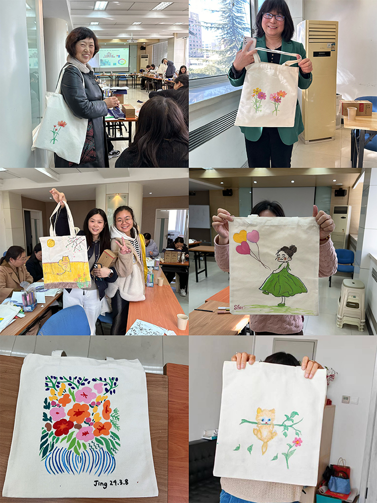 活動邀請河北女子職業(yè)技術學院廉潔老師指導大家“手繪帆布袋”,把溫暖與幸?!按被丶摇,F場氣氛十分熱烈,大家時而低頭作畫,時而相互討論,認真打稿、勾線、上色,細微之處也體現著女科研人的學習精神。一幅幅或古典、或現代、或可愛、或優(yōu)美的作品創(chuàng)作為節(jié)日的喜悅增添了色彩。