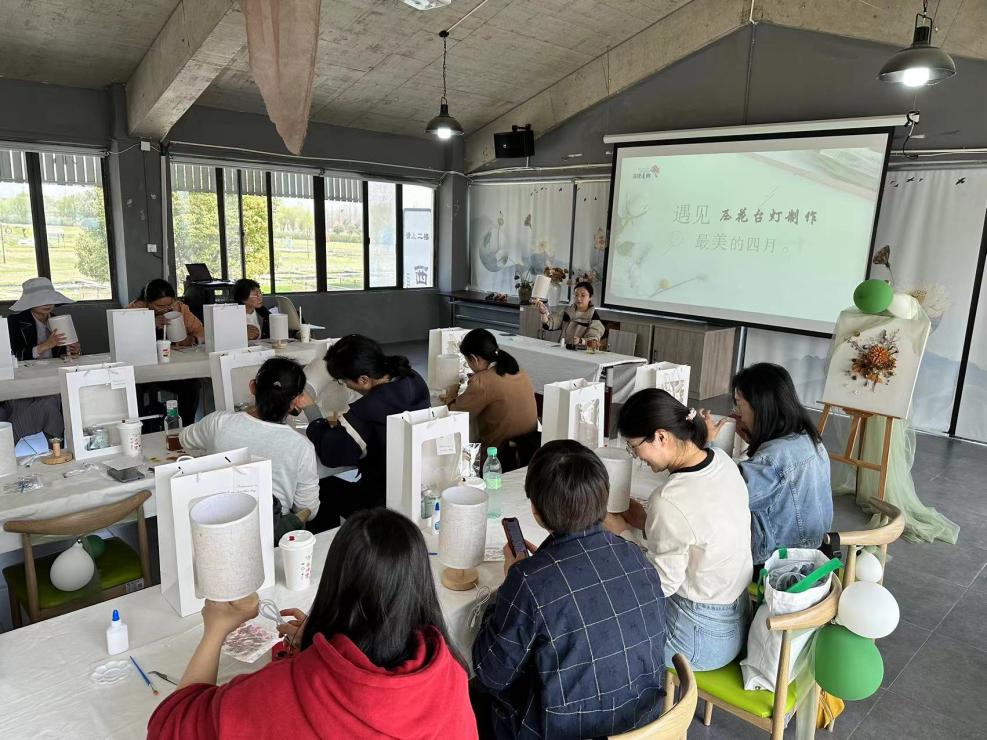 隨后,大家在老師的教授下,手工體驗(yàn)了壓花臺(tái)燈的制作過(guò)程。大家互相交流制作心得,分享巧妙構(gòu)思,感受手工藝術(shù)的獨(dú)特魅力,也將春天的氣息留在了自己的作品中。