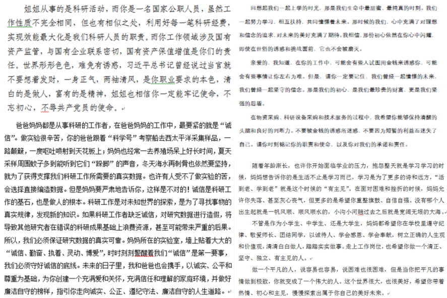 以下是評(píng)選出的若干篇優(yōu)秀家書(shū):