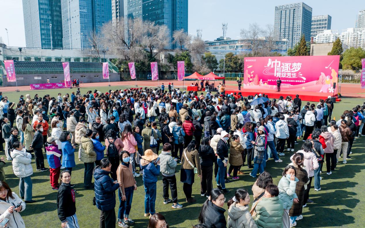 3月8日下午,校工會在校東區(qū)田徑場舉辦了“巾幗逐夢 競綻芳華”女教職工趣味運(yùn)動會。校黨委常委、副校長、工會主席周叢照出席開幕式并致辭。來自全校各個崗位上的1100余名女教職工參與活動?;顒蝇F(xiàn)場參與踴躍,歡笑聲、鼓掌聲不斷,為春日的校園平添了無盡的活力。女教職工趣味運(yùn)動會旨在引導(dǎo)廣大女教職工注意勞逸結(jié)合,享受運(yùn)動帶來的快樂。