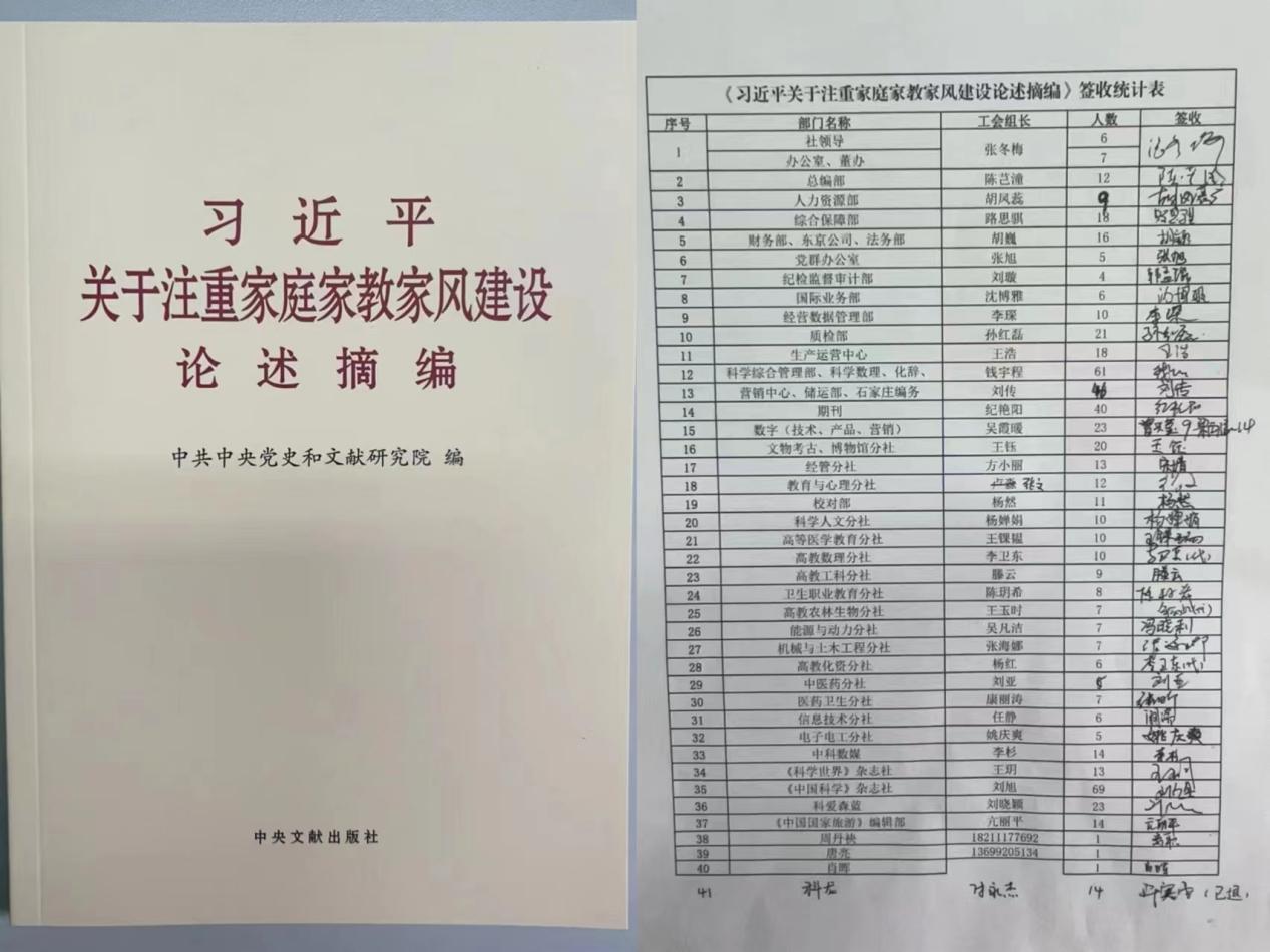 深入學(xué)習(xí)領(lǐng)會習(xí)近平總書記關(guān)于注重家庭家教家風(fēng)建設(shè)的重要論述,為全體工會會員發(fā)放《習(xí)近平關(guān)于注重家庭家教家風(fēng)建設(shè)論述摘編》一書。
