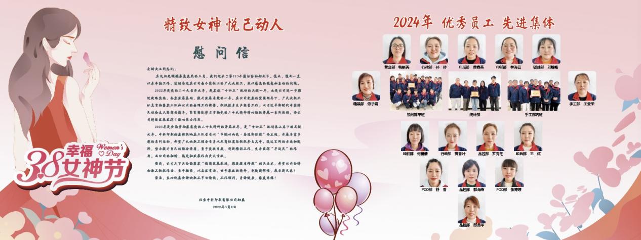 一、3月8日通過宣傳欄向全體女職工發(fā)慰問信并對(duì)2023年度的21名優(yōu)秀女員工和3個(gè)先進(jìn)集體進(jìn)行宣傳。