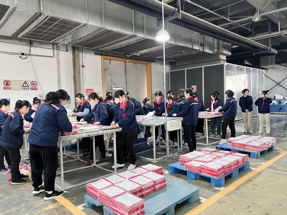 二、3月28日組織開展“奮斗·巾幗逐夢(mèng)”女職工勞動(dòng)技能競賽活動(dòng),共有150余名女職工參與,根據(jù)生產(chǎn)安排在車間進(jìn)行手工勞動(dòng)技能比拼活動(dòng),每組6人,大家分工協(xié)作在規(guī)定時(shí)間內(nèi)完成書籍的配套和分裝,最后整齊碼臺(tái)?;顒?dòng)中大家有說有笑,團(tuán)結(jié)一致共同努力完成目標(biāo),同時(shí)抓拍了最美勞動(dòng)瞬間及合照,大力宣傳中科印刷女性拼搏進(jìn)取、勇于擔(dān)當(dāng)、恪盡職守、默默奉獻(xiàn)的事跡和風(fēng)貌,帶動(dòng)廣大女職工見賢思齊、比學(xué)趕超、再建新功,激發(fā)廣大女職工立足崗位創(chuàng)佳績的榮譽(yù)感。