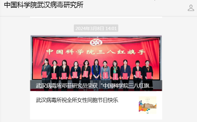 武漢病毒所組織收看表彰大會(huì)并對(duì)鄧菲研究員的工作事跡進(jìn)行宣傳報(bào)道。鄧菲現(xiàn)任國(guó)家病毒資源庫(kù)主任、武漢病毒所婦委會(huì)主任。她長(zhǎng)期扎根于國(guó)家生物資源的保藏事業(yè),牢記使命,以國(guó)家需求為己任,數(shù)十年如一日地默默奉獻(xiàn)、銳意進(jìn)取,用實(shí)際行動(dòng)詮釋著現(xiàn)代女性科學(xué)家的職業(yè)風(fēng)采,在奮斗中綻放著巾幗芳華。通過(guò)學(xué)習(xí)和宣傳,號(hào)召?gòu)V大女職工不斷強(qiáng)化“國(guó)家隊(duì)”“國(guó)家人”“國(guó)家事”“國(guó)家責(zé)”定位,拼搏進(jìn)取,力爭(zhēng)在搶占生物安全領(lǐng)域科技制高點(diǎn)的過(guò)程中施展巾幗力量、彰顯巾幗擔(dān)當(dāng)。
