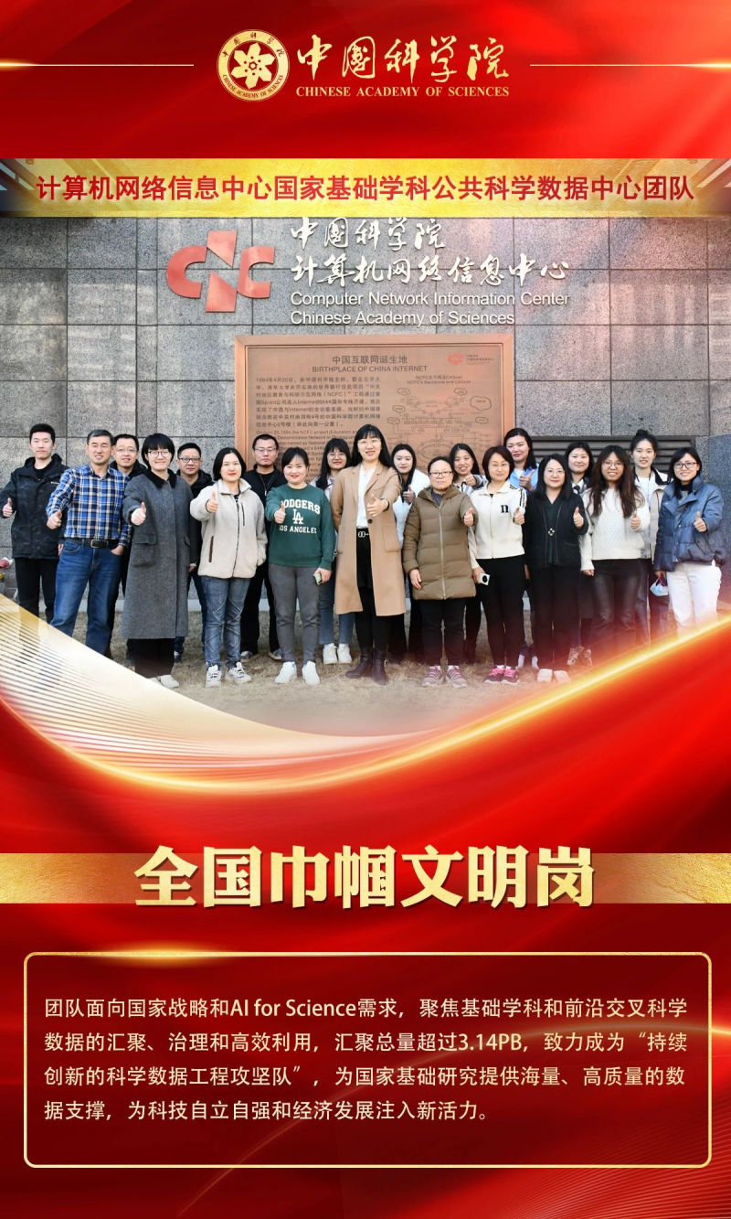 3.禮贊巾幗風采,激揚創(chuàng)新力量。為充分發(fā)揮先進典型的示范引領(lǐng)作用,策劃專題影像紀錄,系統(tǒng)梳理國家基礎(chǔ)學科公共科學數(shù)據(jù)中心團隊(全國巾幗文明崗)的先鋒事跡,通過主題活動深度傳播結(jié)合大廈數(shù)字終端高頻展映,立體展現(xiàn)新時代女性科技工作者勇攀高峰的責任擔當。