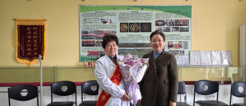 園黨委書(shū)記、副主任尚納新(右)與全國(guó)三八紅旗手獲得者鐘彩虹研究員(左)合影