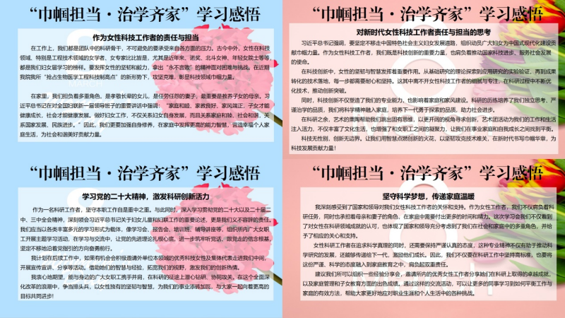 黨委委員崔崤峣等多位女性科研人員及學(xué)生代表分享了自己的學(xué)習(xí)體會(huì),深入探討了新時(shí)代女性科技工作者的堅(jiān)韌與毅力、責(zé)任與擔(dān)當(dāng)。