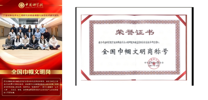 圖五-六:寧波材料所碳基薄膜與涂層技術(shù)研究團(tuán)隊榮獲“全國巾幗文明崗”
