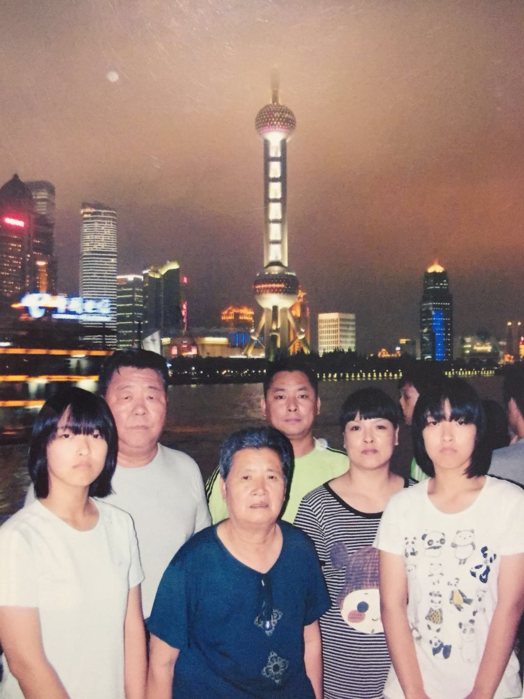 日,緊張的高考結(jié)束后,全家(爺爺、奶奶、爸爸、媽媽、妹妹)去上海游玩。