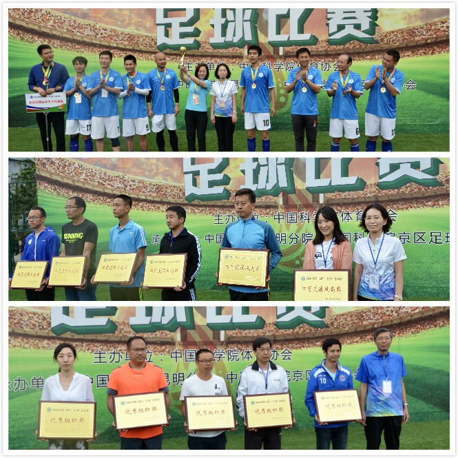 院屬各單位高度重視、精心組織,共有19支代表隊(duì)的近200名運(yùn)動員、教練員參加比賽。比賽中,運(yùn)動員頑強(qiáng)拼搏、奮勇爭先,充分體現(xiàn)了中科院廣大干部職工積極向上的精神風(fēng)貌。經(jīng)過5天60余場比賽的激烈角逐,北京分院第三協(xié)作片代表隊(duì)以精湛的球技、拼搏進(jìn)取的精神和良好的配合意識榮獲冠軍,北京分院第四協(xié)作片代表隊(duì)榮獲亞軍,長春分院代表隊(duì)榮獲季軍。經(jīng)比賽組委會評定,昆明分院代表隊(duì)等6支代表隊(duì)榮獲本屆足球比賽“體育道德風(fēng)尚獎”,上海分院代表隊(duì)等6支代表隊(duì)榮獲本屆足球比賽“優(yōu)秀組織獎”。北京分院第三協(xié)作片代表隊(duì)9號球員王青峰榮獲本屆足球比賽“最佳射手獎”。