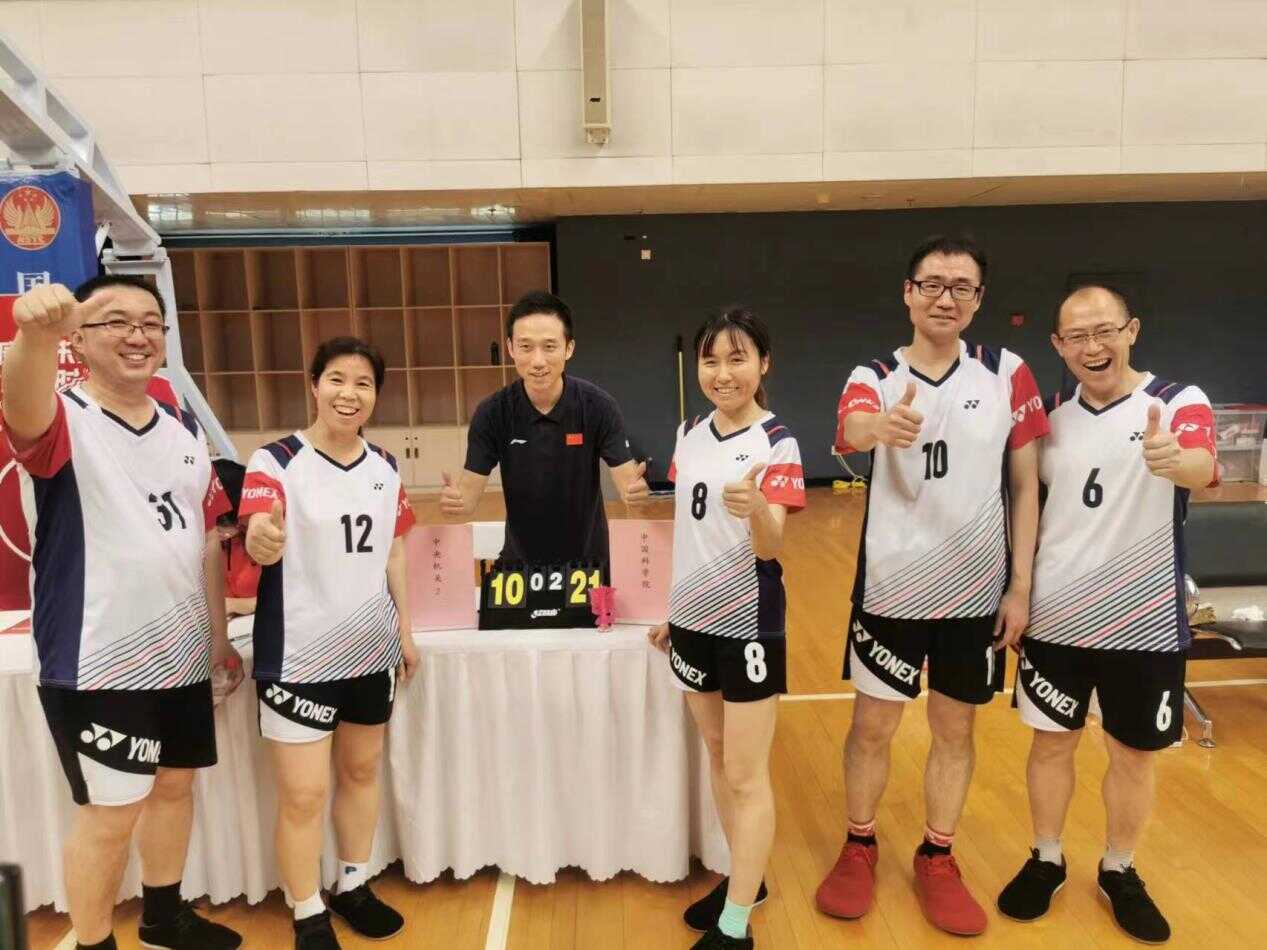 近日,在中央和國家機(jī)關(guān)第二屆運(yùn)動(dòng)會(huì)毽球比賽中,中國科學(xué)院代表隊(duì)團(tuán)結(jié)協(xié)作、勇于拼搏,以6勝1負(fù)的好成績獲得了甲組第三名。