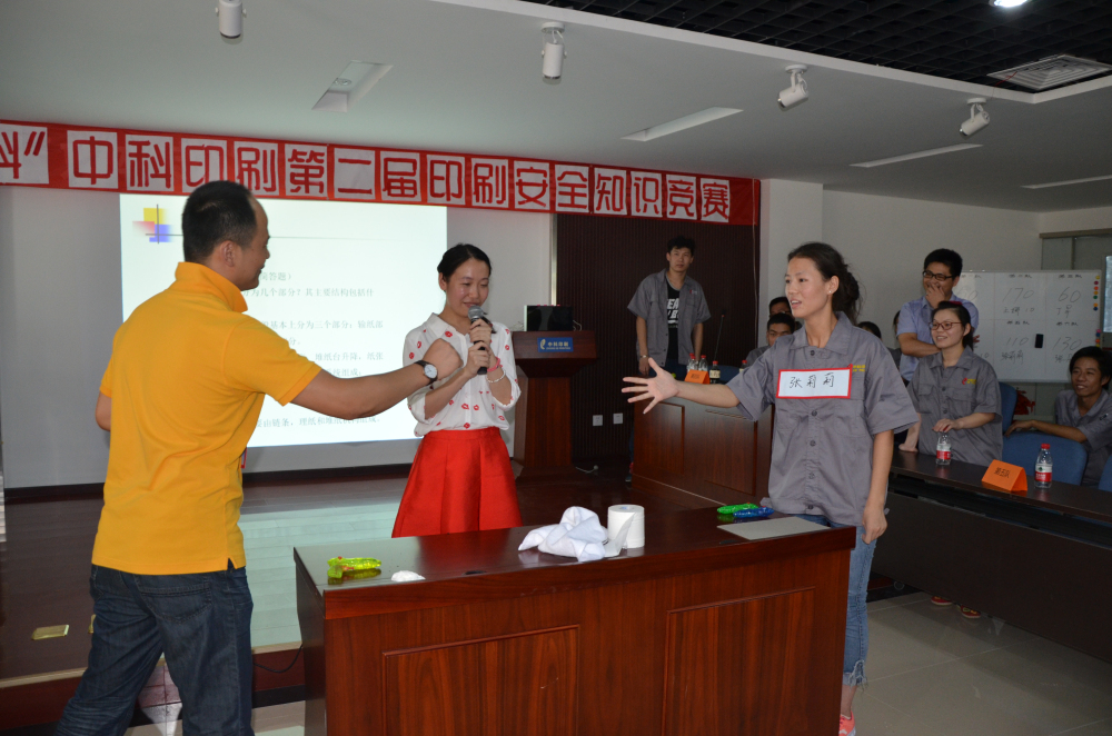 為了普及印刷相關知識,提升青年員工理論素養(yǎng),營造良好的企業(yè)文化氛圍,北京中科印刷有限公司結合自身狀況,于2015年8月12日下午舉辦了第二屆“奔跑吧,中科”印刷安全知識競賽。此次活動共有六個代表隊,共計36名選手參加。這36名選手分別來自于公司的各個部門,且平均年齡都在35周歲以下。比賽賽制分為必答、搶答和個人PK三個環(huán)節(jié),共設置了60道題目,題目范圍涵蓋印刷理論知識、公司規(guī)章制度、生產(chǎn)安全注意事項等內(nèi)容。