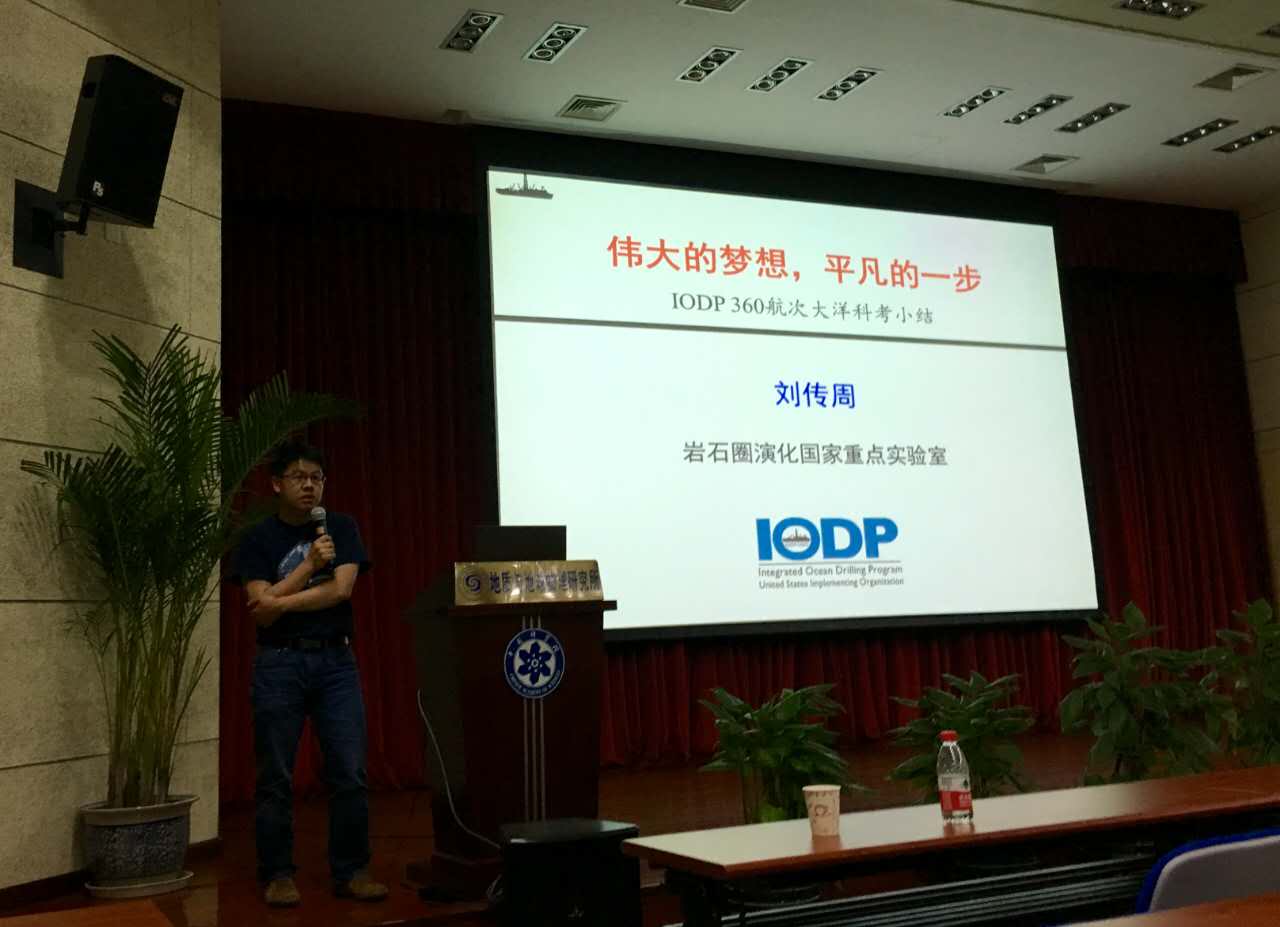 5月3日下午,由地質(zhì)地球所團(tuán)委發(fā)起的“五四”系列活動之青年思享會,邀請到本所青年科學(xué)家劉傳周帶來IODP(國際大洋發(fā)現(xiàn)計劃)360航次大洋科考小結(jié)報告。在報告中,劉傳周首先回顧上世紀(jì)60年代美國提出的Mohole計劃,并詳細(xì)報告了IODP 360航次所隸屬的SloMo(即慢速擴(kuò)張脊地區(qū)下洋殼與莫霍面的性質(zhì))計劃,指出通過連續(xù)鉆探打鉆莫霍面以驗證究竟它是否代表了地殼巖石與地幔巖石的分界面,是全世界地球科學(xué)家的夢想,也是國際大洋發(fā)現(xiàn)計劃近期的優(yōu)先方向。報告圖文并茂地展示了在為期兩個月的時間里,遠(yuǎn)離陸地,置身茫茫大洋上所進(jìn)行的科學(xué)研究,分享了在船上與來自12個國家的30名科學(xué)家共同生活的有趣經(jīng)歷。在報告科研進(jìn)展之余,劉傳周更是不時以自己的經(jīng)歷勉勵年輕學(xué)子們要珍惜青春年華,敢于挑戰(zhàn)自我,無論所學(xué)專業(yè)是“上天、下地、入?!保紤?yīng)好學(xué)善思,不斷進(jìn)取。