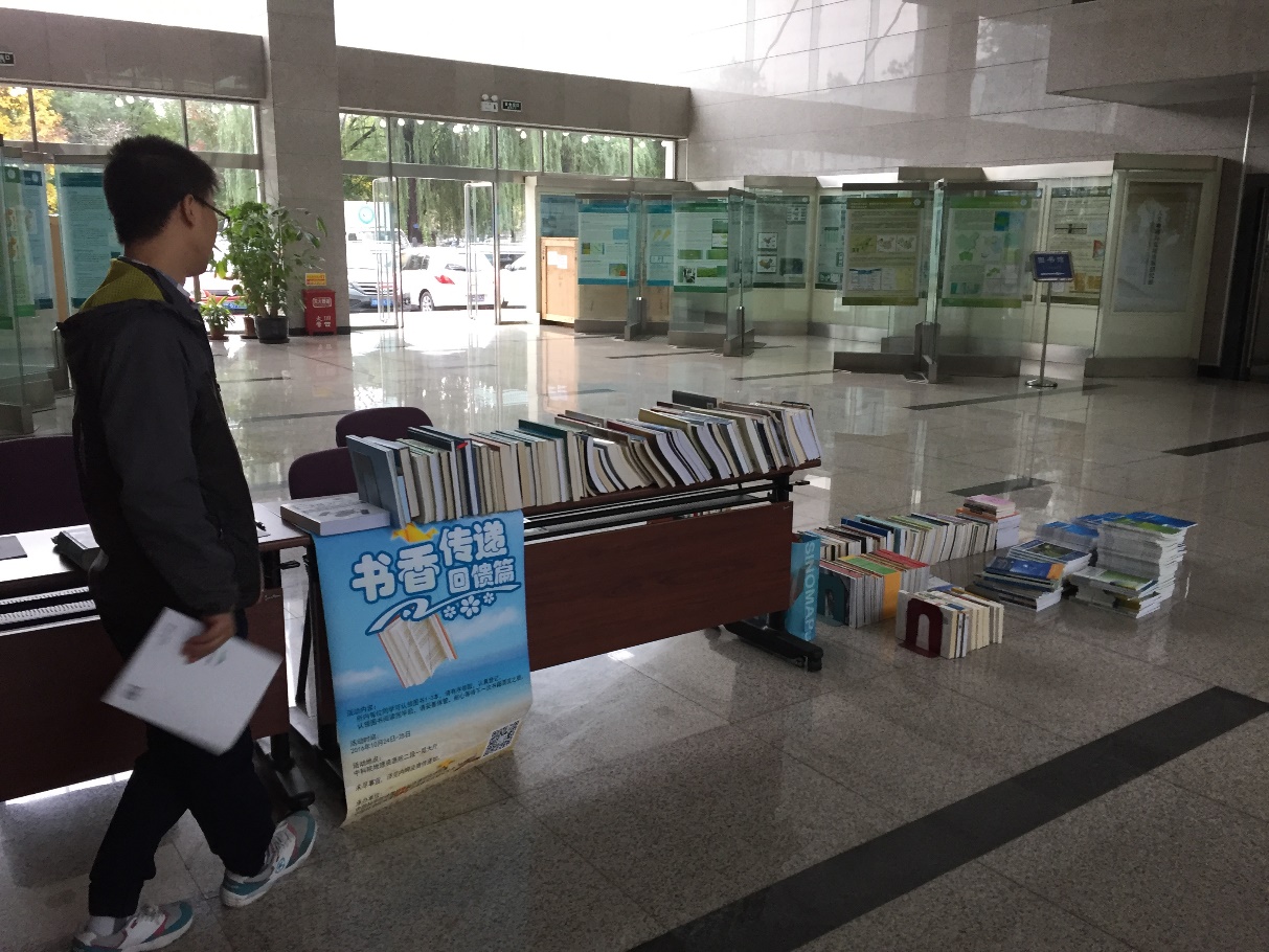 書中自有黃金屋,書中自有顏如玉,2016年10月24-25日,“書香傳遞-回贈(zèng)篇”活動(dòng)在地理資源所二段一樓大廳順利開展,此次活動(dòng)由地理資源所團(tuán)委主辦、研究生會(huì)協(xié)辦,是5月開展的捐書活動(dòng)的續(xù)篇?;顒?dòng)旨在把有價(jià)值的好書送給需要的人,將書香傳遞到師生中間。