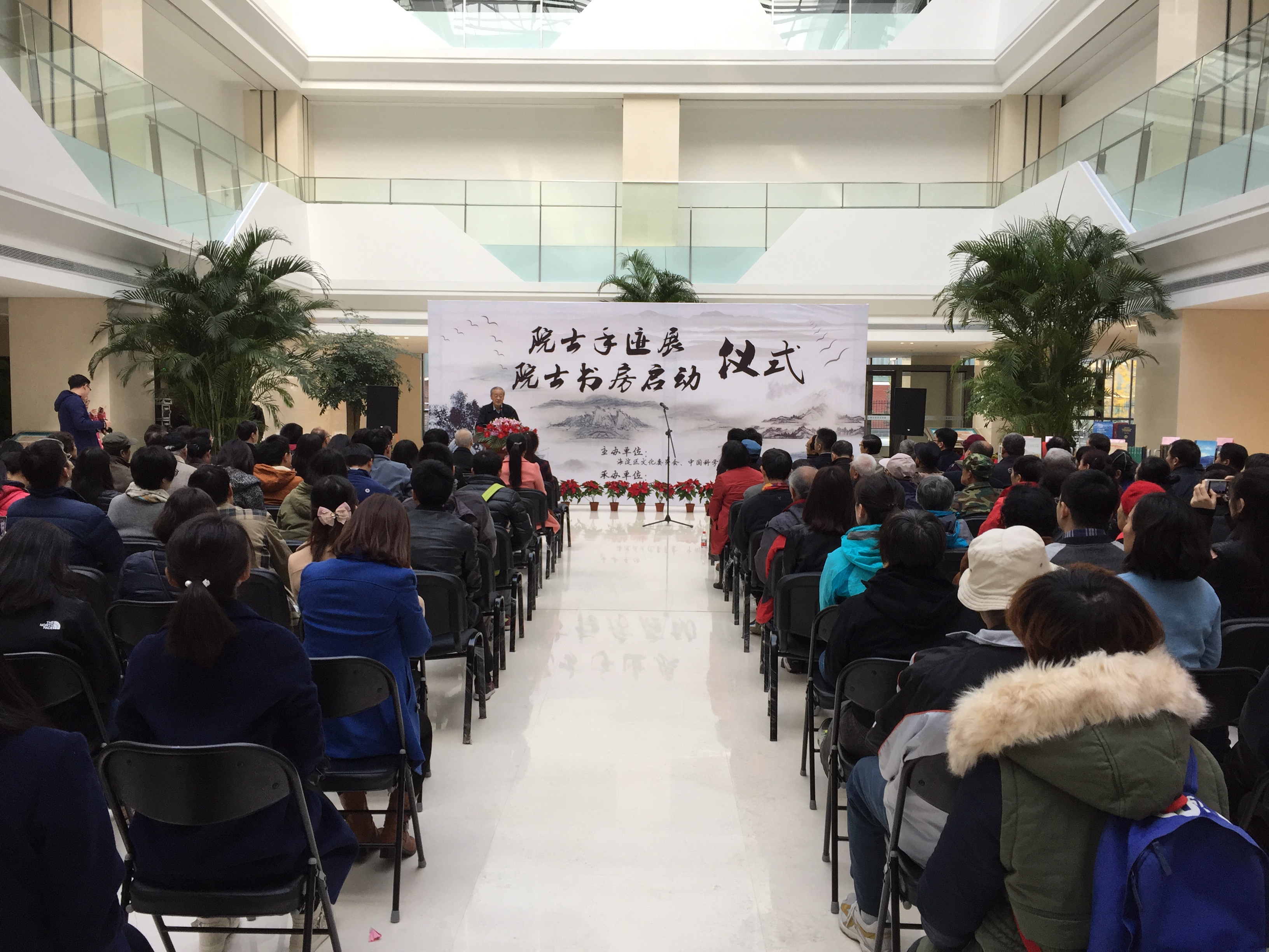 2016年10月30日上午,由海淀區(qū)文化委員會(huì)、中國科學(xué)報(bào)社主辦的“院士手跡展暨院士書房啟動(dòng)儀式”在海淀北部文化中心一樓大廳隆重舉行。地理資源所孫鴻烈院士、鄭度院士、青藏所姚檀棟院士、地理資源所團(tuán)委委員及職工學(xué)生代表出席了儀式,地理資源所團(tuán)委組織志愿者協(xié)助舉辦該活動(dòng),并將地理資源所特色活動(dòng)“書香傳遞”與此次活動(dòng)結(jié)合,向海淀北部文化中心圖書館捐贈(zèng)圖書。儀式活動(dòng)上,院士代表孫鴻烈先生、中國科學(xué)院代表趙彥副局長、圖書館館長溫小明女士作了發(fā)言。溫泉鎮(zhèn)居民、海淀區(qū)新聞中心等媒體朋友以及各單位圖書館管理人員、志愿者等200余人出席儀式。