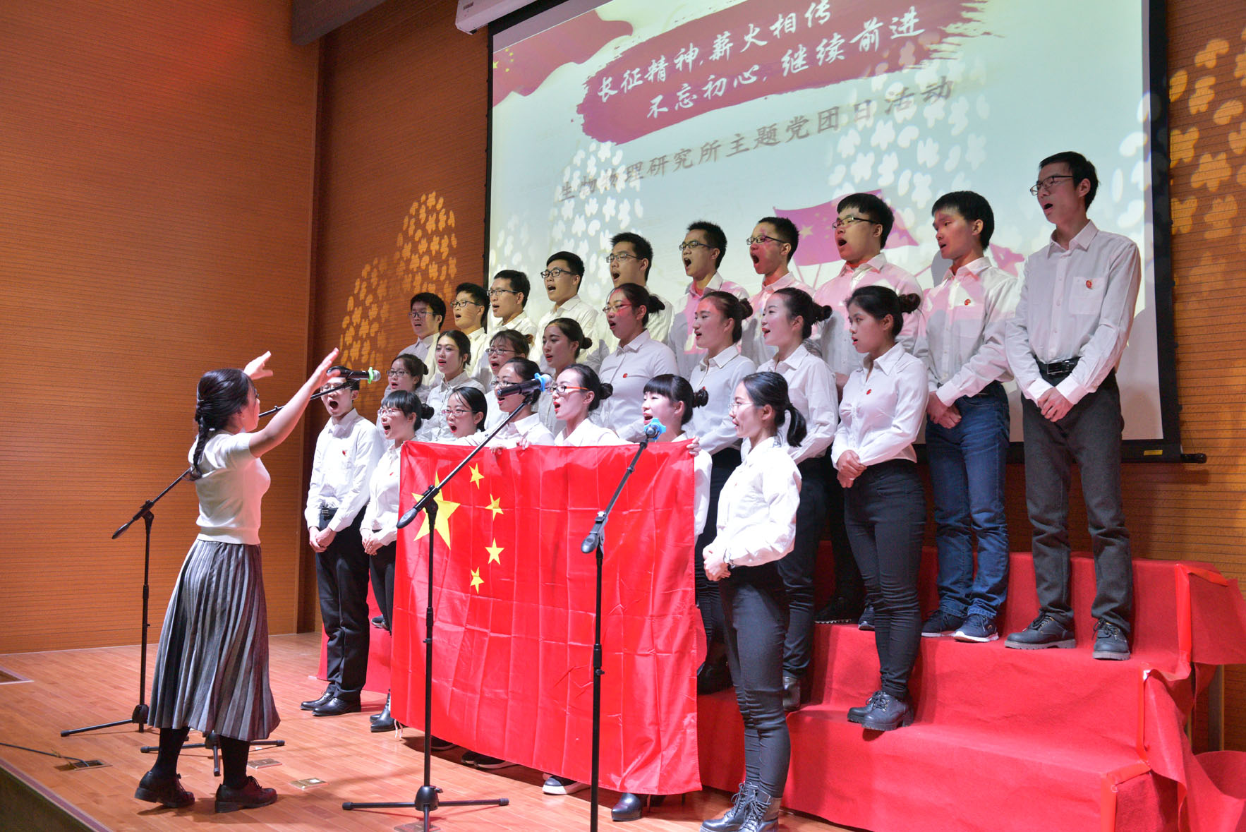 在“主題歌曲大比拼”環(huán)節(jié),以黨支部為單位組成了六支隊(duì)伍,他們胸前佩戴著黨徽?qǐng)F(tuán)徽,齊整亮相,唱出對(duì)黨和祖國(guó)的頌歌,用最響亮的方式紀(jì)念長(zhǎng)征。生物大分子國(guó)家重點(diǎn)實(shí)驗(yàn)室代表隊(duì)以一首《軍港之夜+我們走在大路上》連唱獲得一等獎(jiǎng),核酸生物學(xué)院重點(diǎn)實(shí)驗(yàn)室和蛋白質(zhì)與多肽藥物所重點(diǎn)實(shí)驗(yàn)室聯(lián)合代表隊(duì)的《歌唱祖國(guó)》、機(jī)關(guān)代表隊(duì)的《走向復(fù)興》獲得二等獎(jiǎng),平臺(tái)代表隊(duì)的《愛我中華》、感染與免疫院重點(diǎn)實(shí)驗(yàn)室代表隊(duì)的《我和我的祖國(guó)》以及腦與認(rèn)知科學(xué)國(guó)家重點(diǎn)實(shí)驗(yàn)室代表隊(duì)的《打靶歸來》獲得三等獎(jiǎng)。