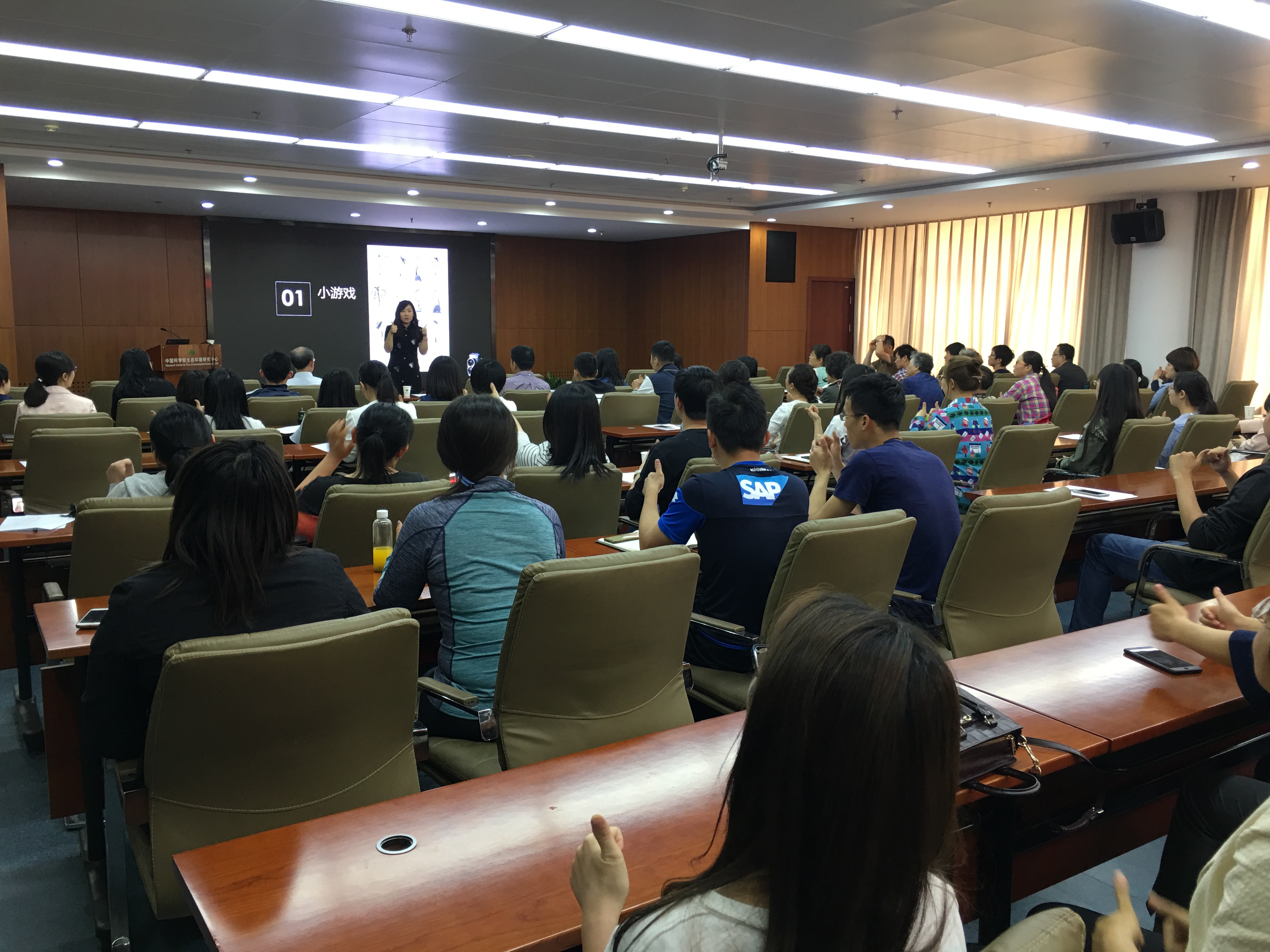 報告會邀請了中科院心理學(xué)研究所心理咨詢專家黃崢副教授作了題為《人際溝通的藝術(shù)》的報告。黃崢細(xì)數(shù)生活中的微小事例為大家娓娓道來溝通之術(shù)和溝通之道,使大家得到了很多的感悟和收獲。報告中黃崢還設(shè)計了互動環(huán)節(jié),通過做小游戲的方式加強對人際溝通的認(rèn)識,報告會氣氛輕松、活躍。