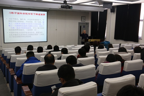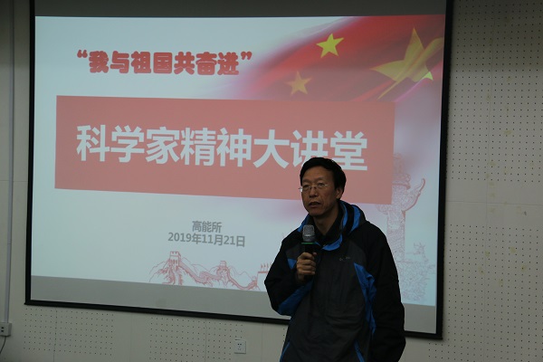 會上,高能所原黨委書記、理論室研究員,現(xiàn)高能所老科協(xié)理事長姜煥清作了題為《學(xué)習(xí)老一輩科學(xué)家的愛國情懷和求真務(wù)實無私奉獻(xiàn)的精神》的主題報告。報告中,他以親歷者的角度講述了高能所的歷史沿革,指出高能物理所的成長和發(fā)展歷程是新中國核科技事業(yè)和高能物理事業(yè)滄桑巨變的縮影,是中華民族當(dāng)代科學(xué)精英科技報國的生動寫照;他通過具體的人物事跡生動闡述了高能所老一輩科學(xué)家的愛國情懷和求真務(wù)實無私奉獻(xiàn)的精神。他在報告中指出:今天的情況與70年前,甚至40年前相比,都是太好了,作為年輕一代,你們要傳承老一輩科學(xué)家的高尚品格,為發(fā)展我國的科學(xué)事業(yè),為實現(xiàn)中華民主的偉大復(fù)興而努力奮斗。