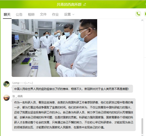 西北高原生物研究所研究生舒鍇: 沒有人能夠預料到17年前籠罩在我國上空的陰霾會在17年之后以一種更為慘烈的形式再度席卷神州大地。這無疑是對十四億中華兒女的嚴峻挑戰(zhàn)。然而飽經(jīng)磨難的中國人民從來不會畏懼任何一種挑戰(zhàn)。黨中央果斷決策,積極響應,為應對疫情迅速做了各級響應。習近平總書記親自部署了應對疫情的各項舉措,為打贏這場疫情的總體戰(zhàn),阻擊戰(zhàn)指明了方向。3月2日下午,習近平先后來到軍事醫(yī)學研究院、清華大學醫(yī)學院,考察新冠肺炎疫情科研攻關和診療救治工作,了解疫苗、抗體、藥品、快檢產(chǎn)品等研究和應用進展情況,看望慰問專家和科研人員,并主持召開座談會,聽取有關部門負責同志和科研人員的意見和建議。首先,作為直屬于我國最高學術咨詢機構高校的一名研究生,我感到非常自豪。因為科學技術是第一生產(chǎn)力,同時在這場疫情中也是一線醫(yī)護人員手中殺向病魔要害的利刃!其次,因為自身所學專業(yè)的緣故,不能為疫情的科研攻關做出強有力的貢獻,在此只能向奮戰(zhàn)在一線科研攻關的同仁們致以崇高的敬意。同時。我也看到了自己身上的責任和重擔,并下定決心要學好自己的專業(yè),爭取在自己的領域內(nèi)為祖國貢獻自己的力量,將祖國建設得和諧美麗。第三,作為一名共青團員,是黨的助手和后備軍。在新時代我們要努力提升自己的思想高度和工作能力。尤其作為國科大的學生,更要在思想和業(yè)務水平上達到雙高!不辜負國家的培養(yǎng)以及黨和人民的信任。不忘初心,砥礪奮進,爭取為祖國發(fā)展貢獻自己的一份力量!