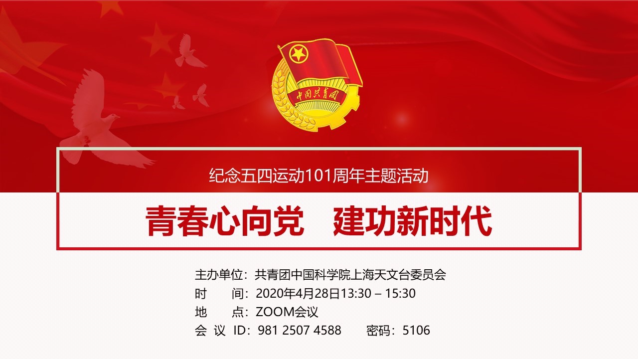 在新冠肺炎疫情防控斗爭中,上海天文臺廣大團(tuán)員青年積極響應(yīng)團(tuán)組織號召,在上海天文臺黨委的統(tǒng)一指導(dǎo)下,堅(jiān)持黨旗所指就是團(tuán)旗所向,充分發(fā)揚(yáng)了科學(xué)院人不畏艱險(xiǎn)、攻堅(jiān)克難的精神,在疫情防控期間仍然堅(jiān)持工作。值此五四運(yùn)動101周年之際,為了激勵(lì)廣大團(tuán)員青年勇于擔(dān)當(dāng)、甘于奉獻(xiàn)和建功新時(shí)代,發(fā)揚(yáng)五四精神,上海天文臺團(tuán)委于4月28日下午于線上主辦了主題為“青春心向黨 建功新時(shí)代”的紀(jì)念五四運(yùn)動101周年主題活動,全臺30余名青年團(tuán)員參與了此次活動,并展開積極交流。本次主題活動得到了臺黨委和天文地球動力學(xué)黨支部等多個(gè)黨支部的支持。