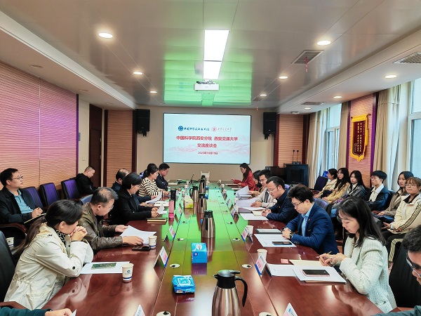 ? ? ? 為貫徹落實(shí)科教興國(guó)戰(zhàn)略,加強(qiáng)教育、科技、人才基礎(chǔ)建設(shè)和支撐,10月19日,西安交通大學(xué)團(tuán)委書記李利波帶領(lǐng)校團(tuán)委班子成員、“攀登計(jì)劃”優(yōu)秀學(xué)生代表前來參訪交流,中國(guó)科學(xué)院西安分院相關(guān)部門負(fù)責(zé)人、研究所研究生部主任、導(dǎo)師及科研人員代表等30余人參加共建交流座談。西安分院分黨組副書記詹瑞,黨群處處長(zhǎng)、機(jī)關(guān)黨委副書記楊文正出席活動(dòng)。座談會(huì)由西安分院團(tuán)工委書記王艷艷主持。