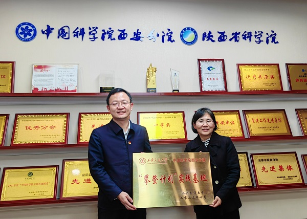 會(huì)后,楊文正、李利波共同為“西安交通大學(xué)-中國(guó)科學(xué)院西安分院‘攀登計(jì)劃’”實(shí)踐基地揭牌。