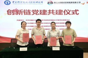 為構(gòu)建“黨建+創(chuàng)新”協(xié)同機制,現(xiàn)場舉行“創(chuàng)新鏈黨建”共建儀式,醫(yī)學(xué)所核酸分子醫(yī)學(xué)黨支部、診斷與組學(xué)黨支部、藥物與器械黨支部與省國貿(mào)集團浙藥第一黨支部共同簽約“黨建構(gòu)建生物醫(yī)藥產(chǎn)業(yè)高質(zhì)量發(fā)展新機制黨建共建行動”,讓黨組織成為鏈接科研資源與產(chǎn)業(yè)需求的“橋梁”;同時活動現(xiàn)場舉行“浙青年·合創(chuàng)行動”共建儀式,醫(yī)學(xué)所團委書記與省國貿(mào)集團團委書記共同交換水晶杯,進一步集聚雙方青年智慧,推動合力建功。
