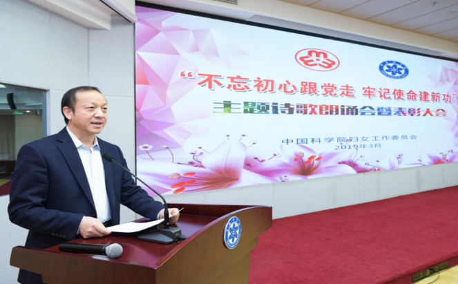 春意融融,萬物復蘇。3月6日,在第109個“三八”國際勞動婦女節(jié)來臨之際,中科院在京舉辦“不忘初心跟黨走 牢記使命建新功”主題詩歌朗誦會暨表彰大會,中科院副秘書長、直屬機關(guān)黨委常務副書記李和風出席并講話。