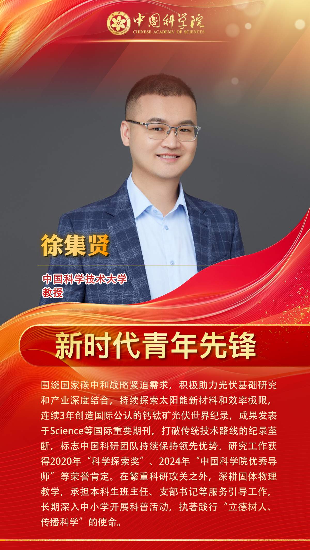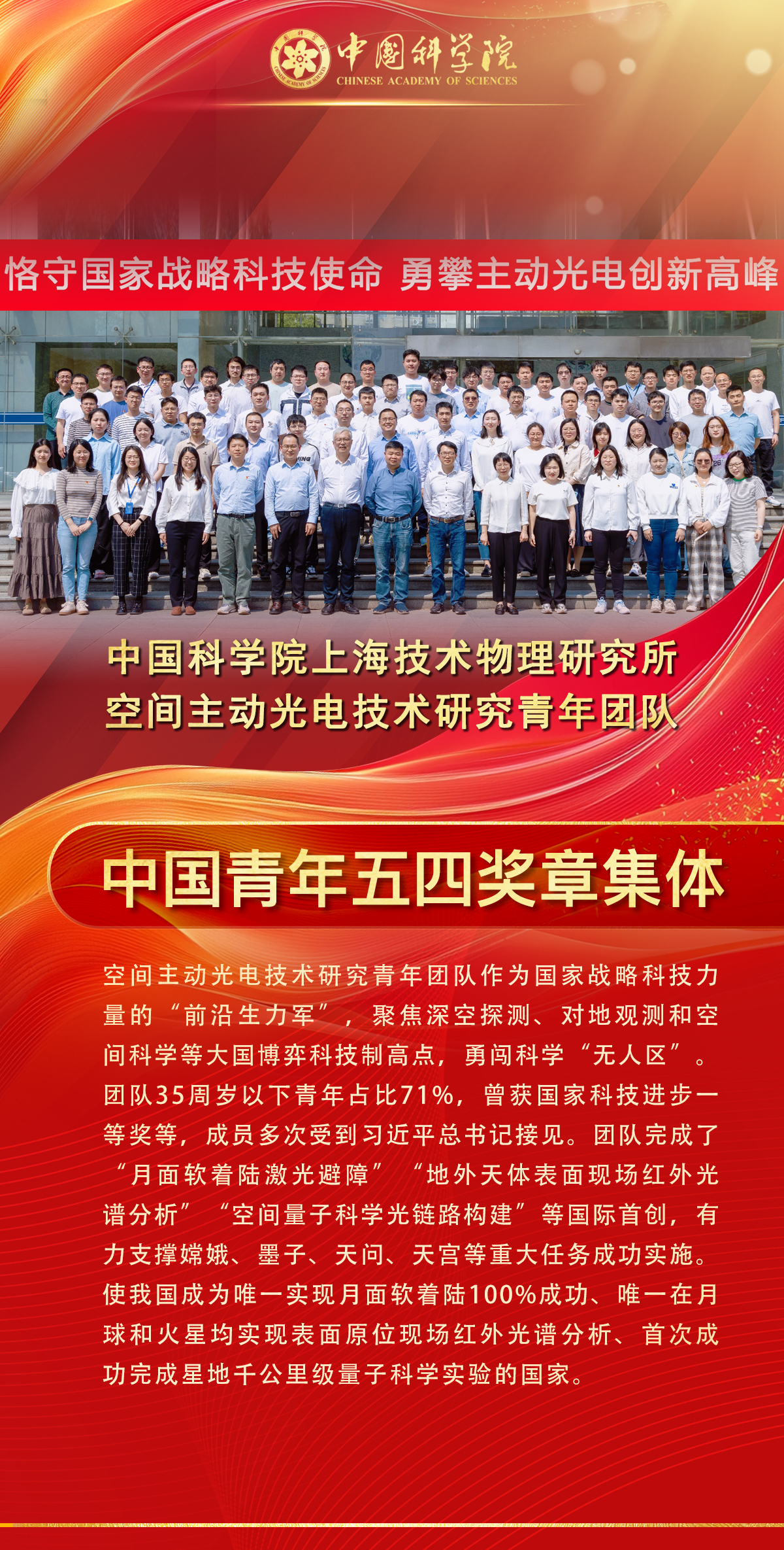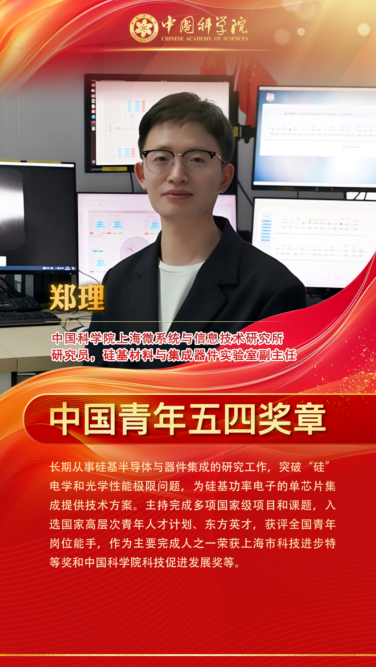 中國科學(xué)院3名同志榮獲中國青年五四獎?wù)拢?個集體榮獲中國青年五四獎?wù)录w,5名同志榮獲新時代青年先鋒獎。