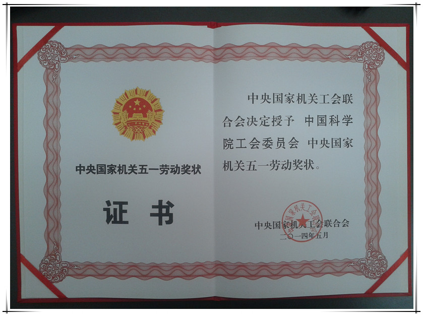 4月29日, “中央國家機(jī)關(guān)五一勞動獎狀獎?wù)骂C獎儀式”在北京人民大會堂隆重舉行,經(jīng)中央國家機(jī)關(guān)工會聯(lián)合會推薦,中國科學(xué)院工會委員會榮獲“中央國家機(jī)關(guān)五一勞動獎狀”。