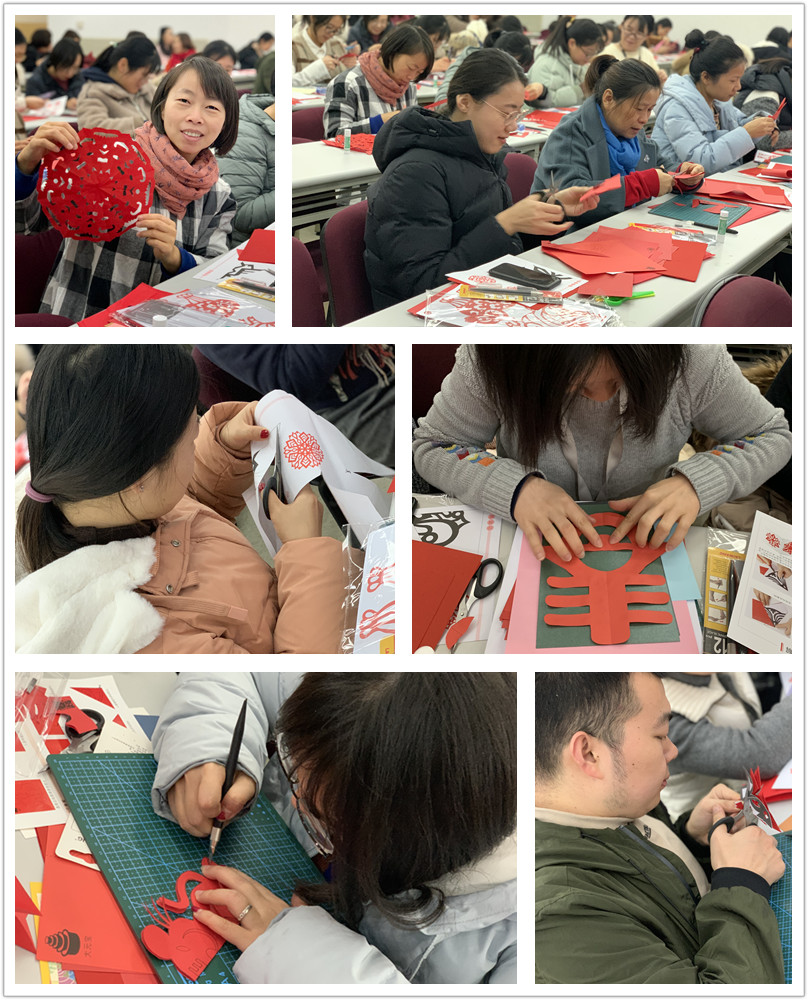 剪紙是中國民間藝術的瑰寶,它不僅是我國特有的一種民間藝術,風格獨特,而且也是一項手腦并用的實踐活動。為了迎接新春佳節(jié),促進中心師生的文化交流,2020年1月9日中午在楓林園區(qū)1號樓報告廳舉辦了新年剪紙文化活動。現(xiàn)場的參與者紛紛躍躍欲試,在工作人員的指導下掌握了剪紙刻畫的技巧后,便開始了藝術創(chuàng)作。平凡的紙張在指尖煥發(fā)出了別樣的風采,一個個形態(tài)各異的圖案活靈活現(xiàn),一張張利用剪刀刻刀加工出的活靈活現(xiàn)的藝術品涌動著生命的氣息。大家臉上都洋溢出了喜悅之情,積極交流分享自己的成果。傳統(tǒng)的民俗剪紙對于一些重要的節(jié)日而言是非常有意義的,剪紙的制作也常常會讓我們的節(jié)日變得更加得有氣氛。此次活動鍛煉了大家的動手能力,讓大家在充滿樂趣的活動中體驗和傳承了中國的剪紙文化。
