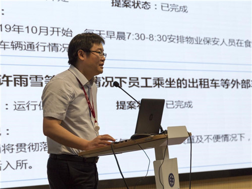 大會(huì)在雄壯的國(guó)歌聲中拉開(kāi)序幕。張馳代表第三屆職代會(huì)主席團(tuán)作2020年半年度工作報(bào)告。報(bào)告首先總結(jié)了第三屆職工代表大會(huì)第二次會(huì)議提案的完成情況。三屆二次職代會(huì)共征集到提案55個(gè),31個(gè)作為意見(jiàn)和建議,立案的24個(gè)提案中17個(gè)已經(jīng)落實(shí),張馳重點(diǎn)介紹了正在落實(shí)中的提案的進(jìn)展情況。報(bào)告從有效發(fā)揮民主管理和民主監(jiān)督作用、做好服務(wù)保障開(kāi)展人文關(guān)懷、疫情防控期間作用的發(fā)揮、助力創(chuàng)新文化建設(shè)等方面,全面總結(jié)了2020年上半年的工作,并對(duì)下階段的重點(diǎn)工作進(jìn)行了介紹。