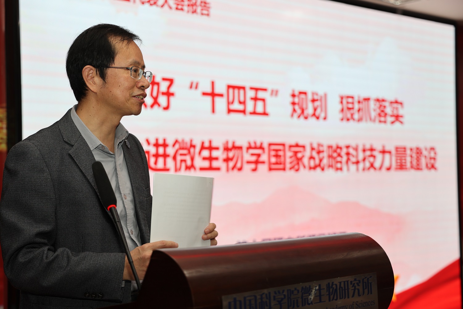 會議第一階段,錢韋所長作《做好“十四五”規(guī)劃、狠抓落實,加速推進微生物學國家戰(zhàn)略科技力量建設》報告,全面回顧和總結了研究所2021年度工作和發(fā)展情況,介紹了研究所的定位和使命、基礎前沿項目和重大成果、研究所發(fā)展現(xiàn)狀與趨勢、財務工作報告、研究所十四五規(guī)劃、2022年重大改革措施。他重點介紹了研究所科技工作及重大產(chǎn)出情況,我所在國家和院重大項目的申請及立項、基金的獲批、論文、知識產(chǎn)權等方面都獲得了突破性進展。在原有成績的基礎上,推出了新的疫苗、廣譜抗體,維生素B5的生物合成與綠色制造等多項代表性成果。錢韋所長還介紹了“三年行動方案”的八個方面:一、加強黨的領導,弘揚干事創(chuàng)業(yè)的科學家精神;二、聚焦主責主業(yè),承擔和高質(zhì)量完成國家重大科技任務;三、加強面向未來的前沿和交叉基礎科學研究布局;四、加強使命驅(qū)動的建制化基礎研究團隊建設;五、激勵和促進重大科技成果產(chǎn)出;六、增強人才隊伍實力,加快青年學術帶頭人引進培養(yǎng);七、加強優(yōu)秀青年科技人才和特別研究助理隊伍建設;八、加強科技支撐,改善創(chuàng)新生態(tài),加強高水平學術交流,營造積極科學文化氛圍。