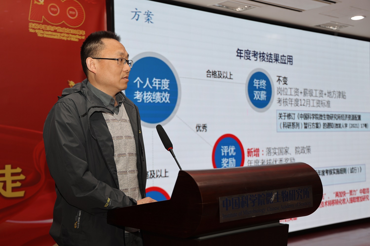 周暢做《中國科學院微生物研究所崗位績效工資管理辦法》修訂情況匯報