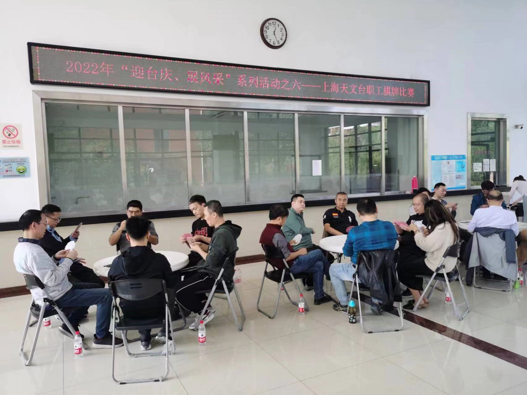 為慶祝中科院上海天文臺(tái)成立60周年暨建臺(tái)150周年,在繁忙的科研工作中豐富廣大職工的文化生活,增加職工間交流,提升團(tuán)隊(duì)合作能力,臺(tái)工會(huì)舉辦了“迎臺(tái)慶、展風(fēng)采”系列活動(dòng)之六——上海天文臺(tái)職工棋牌比賽。由臺(tái)棋牌興趣小組承辦的上海天文臺(tái)職工棋牌比賽于2022年10月21日上午在中科院上海天文臺(tái)佘山科技園區(qū)如期舉行。